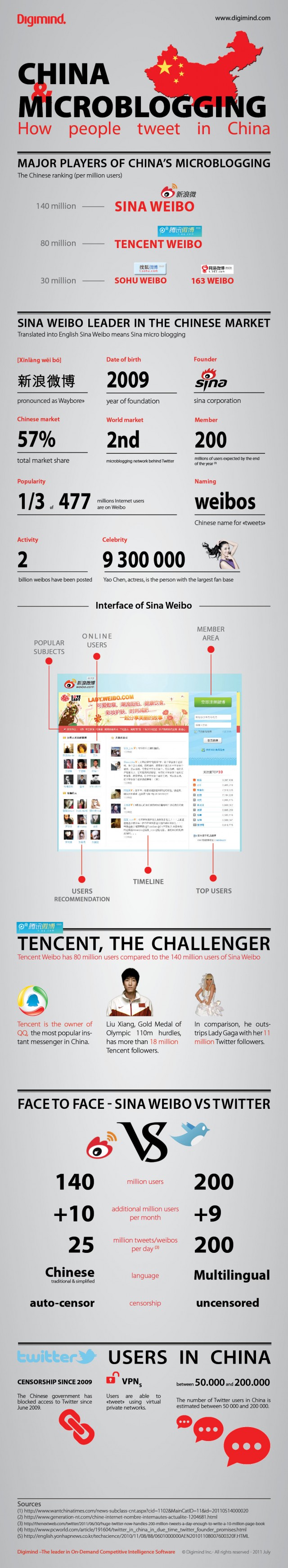 Sina’s Weibo microblogging platform has c.250 million registered users who are typically white collar workers and serious bloggers.  Sina Corp will launch an English-language microblog aimed at users abroad, entering a market dominated by U.S.-based Twitter.